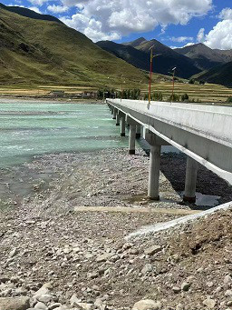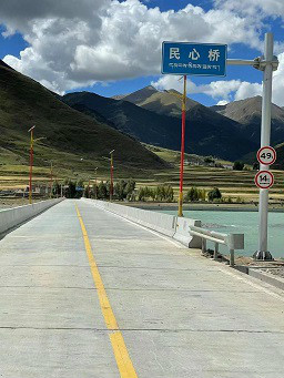龍珠崗大橋是架起墨竹工卡縣扎雪鄉(xiāng)龍珠崗村與林周縣阿朗鄉(xiāng)布崗村的重要通道,大橋全長0.824公里,其中橋梁總長308米。該大橋是連接一河兩岸群眾生產(chǎn)生活的主要通道,是鞏固拓展脫貧攻堅成果同鄉(xiāng)村振興有效銜接、助力美麗墨竹工卡建設(shè)的有力舉措。龍珠崗大橋的通車,使墨竹工卡縣龍珠崗村和林周縣布崗村之間的通行時間從原先的一個小時縮短至30分鐘,有效改善當?shù)卮迕癯鲂袪顩r,對于促進區(qū)域經(jīng)濟發(fā)展具有重要意義。