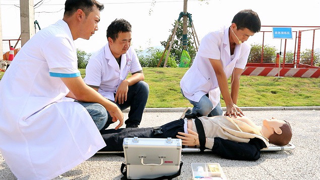 現(xiàn)場對傷者進行心肺復蘇