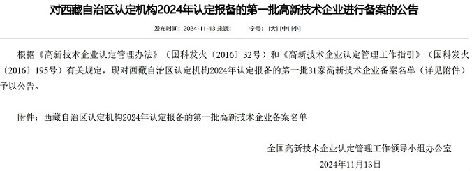 公司再次通過“2024年高新技術(shù)企業(yè)”認定