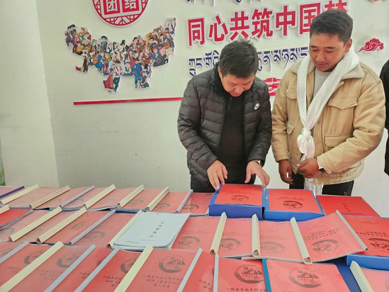 在駐村點(diǎn),頓珠朗加一行先后查閱駐村工作臺(tái)賬、參觀駐村點(diǎn)特色“積分”超市、深入駐村宿舍實(shí)地查看居住環(huán)境,與駐村工作隊(duì)員進(jìn)行面對(duì)面座談交流,了解駐村隊(duì)員的身體狀況、工作狀態(tài),詢(xún)問(wèn)駐村隊(duì)員工作生活中的難點(diǎn)、疑點(diǎn)問(wèn)題,并向駐村隊(duì)員敬獻(xiàn)了哈達(dá),送去了米面油等生活物資。