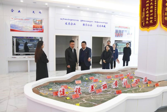 余忠均一行參觀了公司榮譽室,詳細了解了西藏天路的歷史發(fā)展沿革、股權結構、業(yè)務板塊、運營狀況及區(qū)內外代表性工程建設項目等。